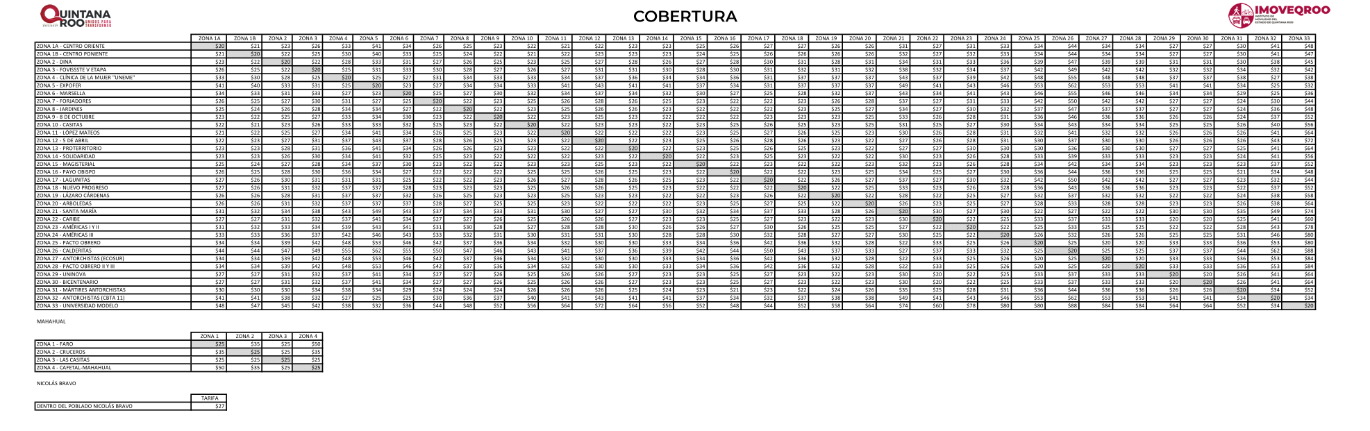 Costo de tarifas